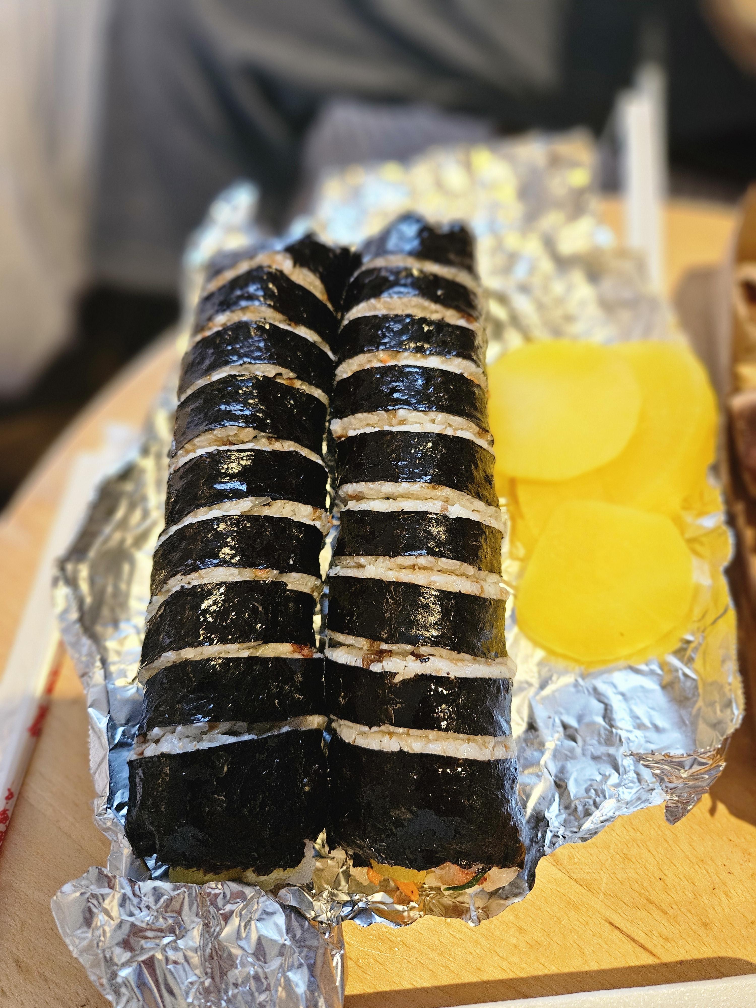 김밥가격은 한줄에 4,000원 치즈5000원 참치 6,000원 입니다 기본김밥은 2줄부터 가능하며 저희는 5시반정도에 갔는데 주문하자마자 바로주신다고해서 40분있다 찾으러 올게요 라고 자체 지연을 했네요 ㅎㅎ